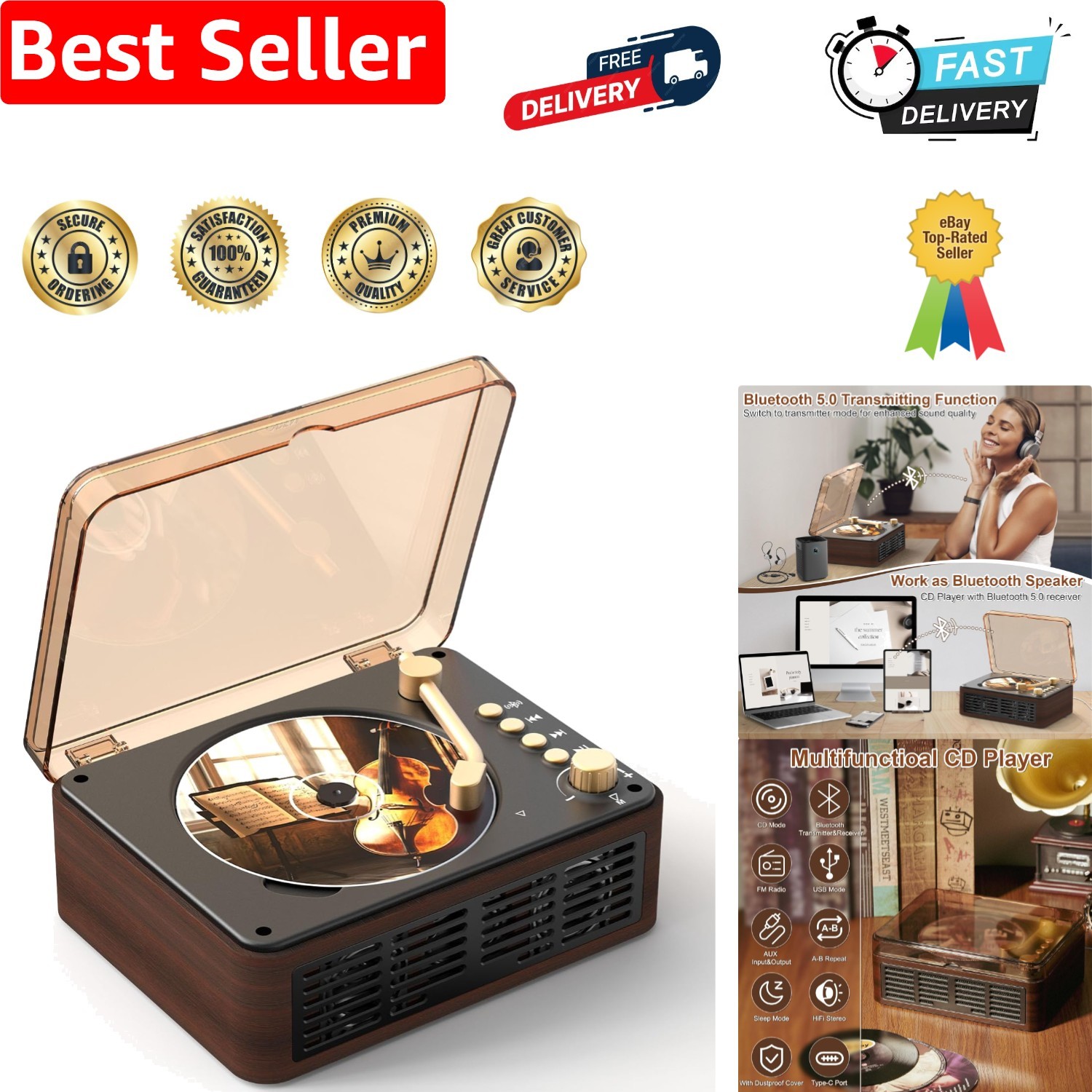 Retro Cd Player Multifunction Tray Type Bt Player -Record Player Usb L