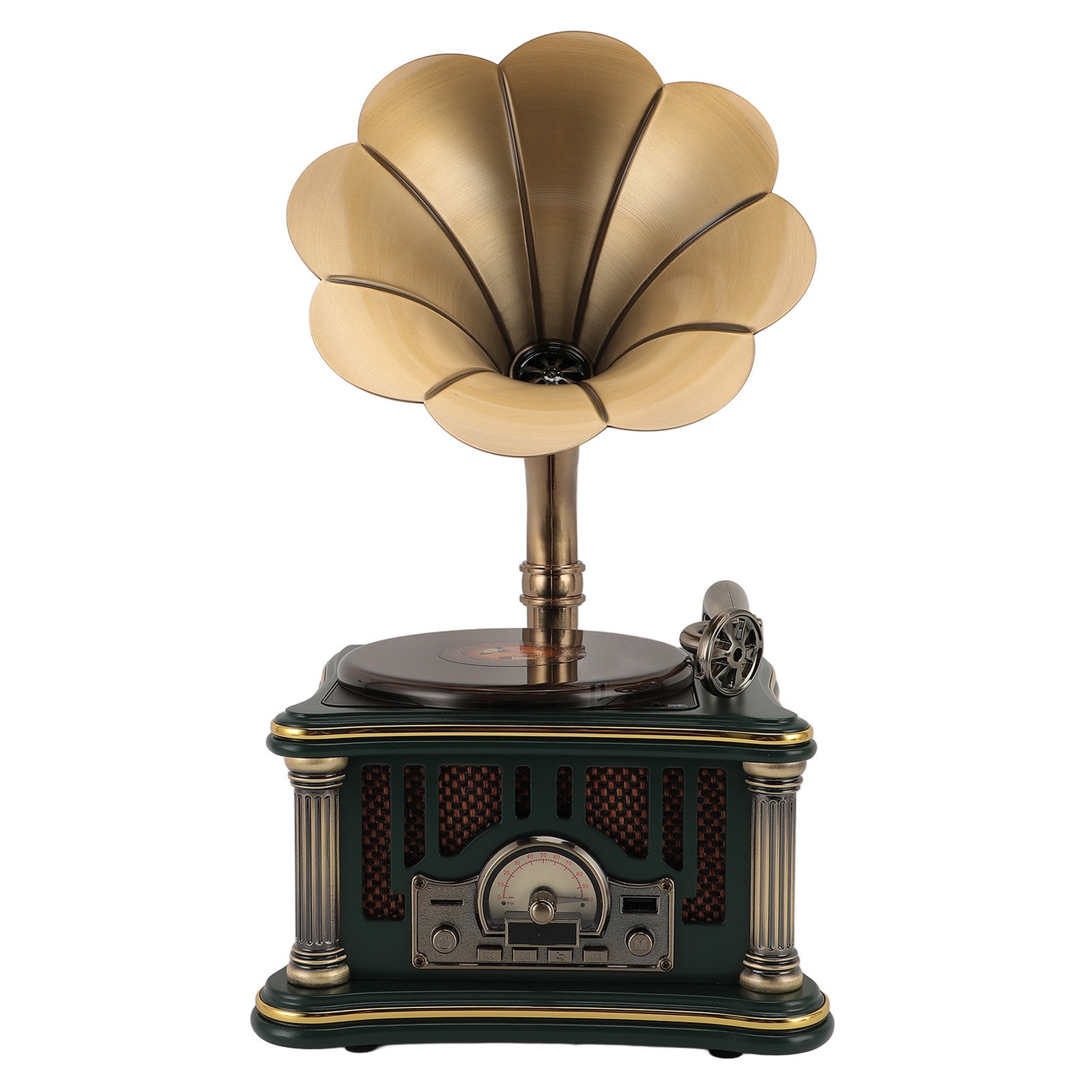 Green Vintage Gramophone Speaker 2000mAh AUX Input Retro CD Player