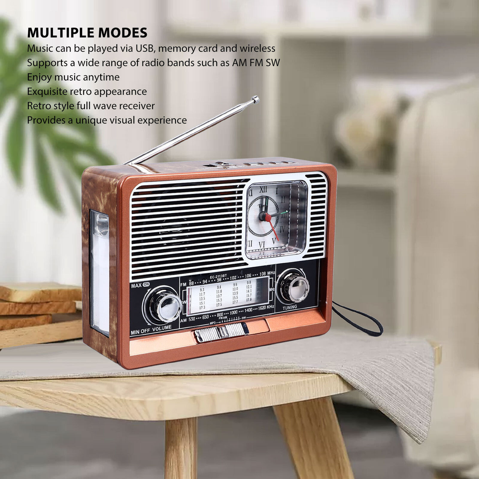 Vintage Radio Multifunctional AM FM SW Band Clock Flashlight Function Retro BT