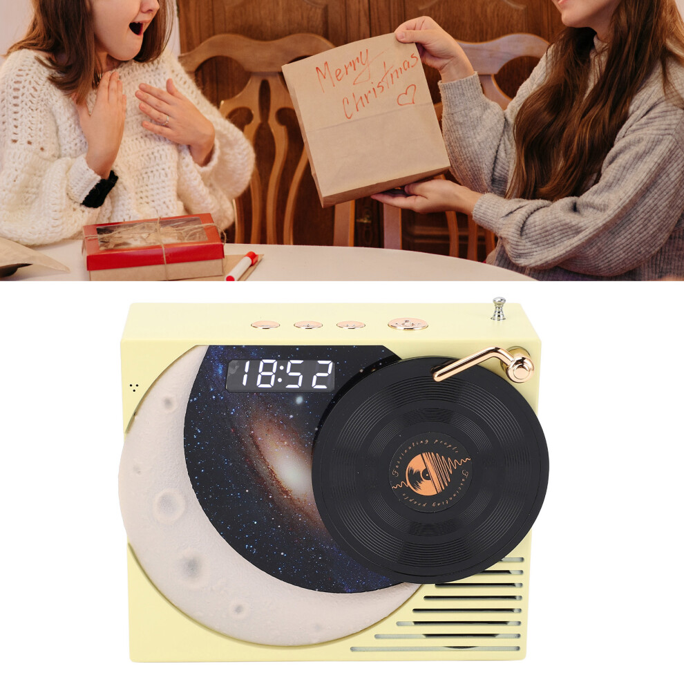 Retro Bluetooth Speaker with Clock Display and Ambient Light 360 Degree Surround Sound BT Speaker Radio Station Yellow