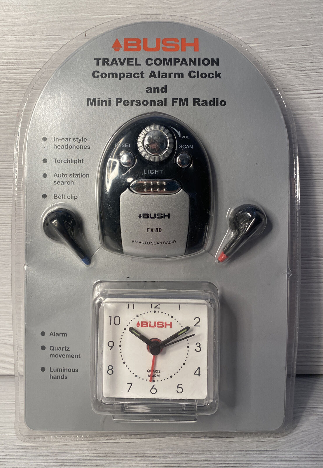 BUSH TRAVEL COMPANION COMPACT ALARM CLOCK AND MINI PERSONAL FM RADIO RETRO