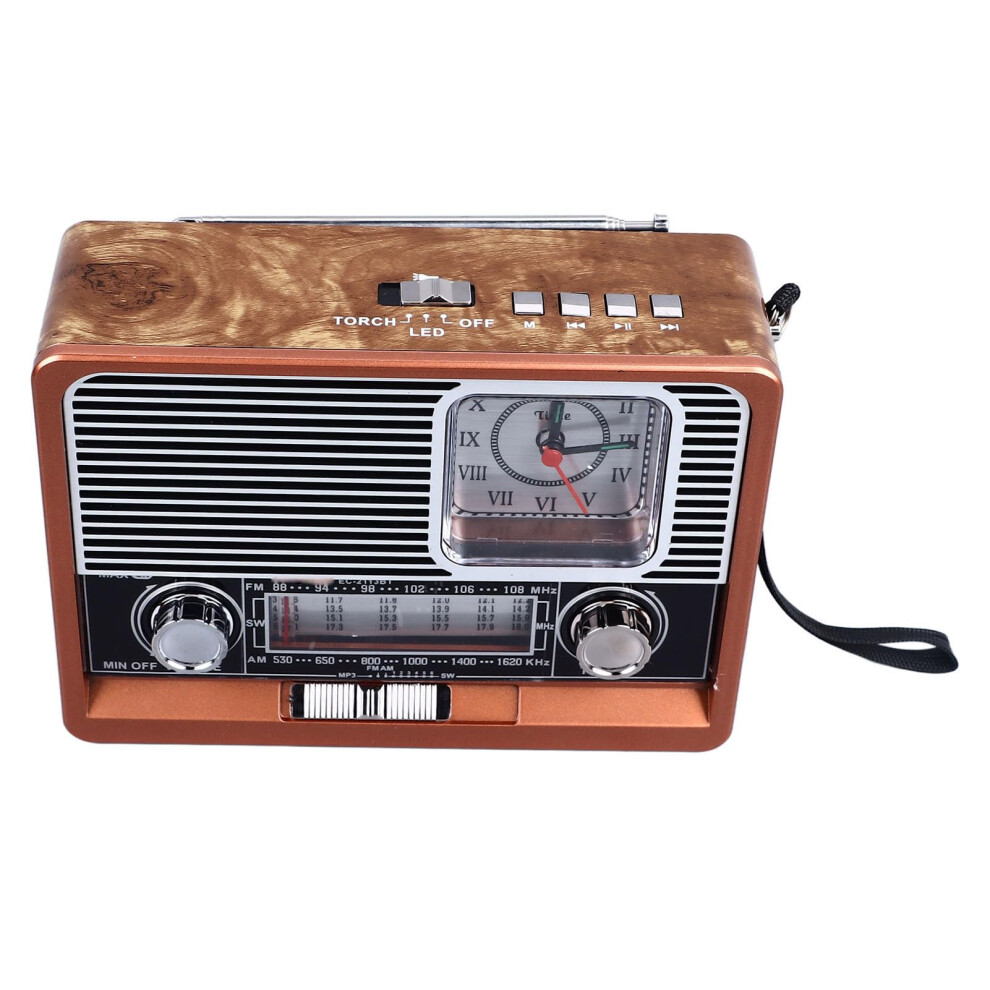 Chronus Retro Portable Radio, AM FM SW Radio, with Flashlight, Clock, Bluetooth Speaker, USB, MP3 Player, TF Card, Rechargeable Battery and Battery