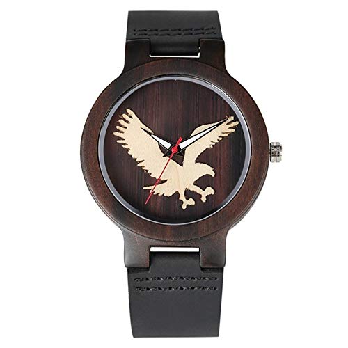 OIFMKC Wooden Watch Royal Wood Watch Men's Watches Vivid 3D Eagle Dial Quartz Watch Bamboo Ebony Wood Retro Leather Man Clock Hour Relogio Masculino- Black