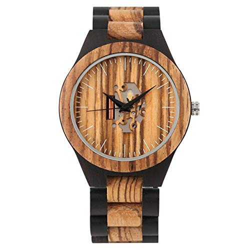 OIFMKC Wooden Watch Men's Watch Full Wood Watch Black Ebony Wooden Strap Fashion Quartz Analog Casual Business Clock Retro Wristwatch Relojes Hombre,Zebra Wood