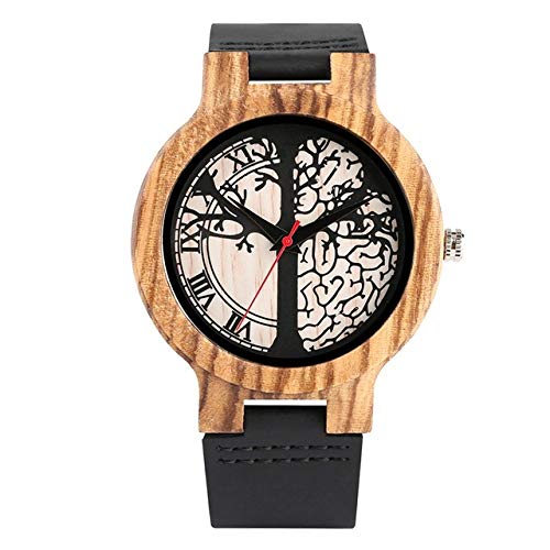 OIFMKC Wooden Watch Creative Life Tree Wooden Watch Men's Quartz Black Genuine Leather Analog Watch Retro Clock Wood Man Clock Watches Reloj Hombre,2