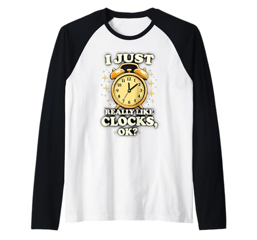 I Just Really Like Clocks OK? Retro Funny Clock Lover Raglan Baseball Tee
