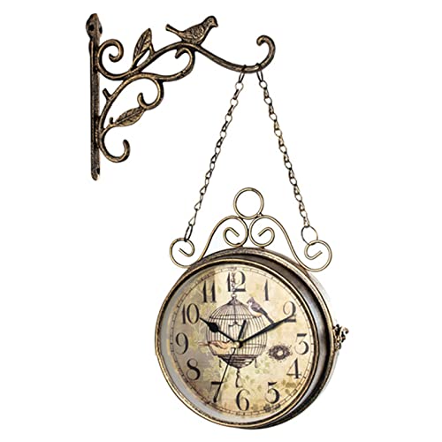 Retro Wall Clocks Double Side Living Room Mute Metal Home Decoration GB