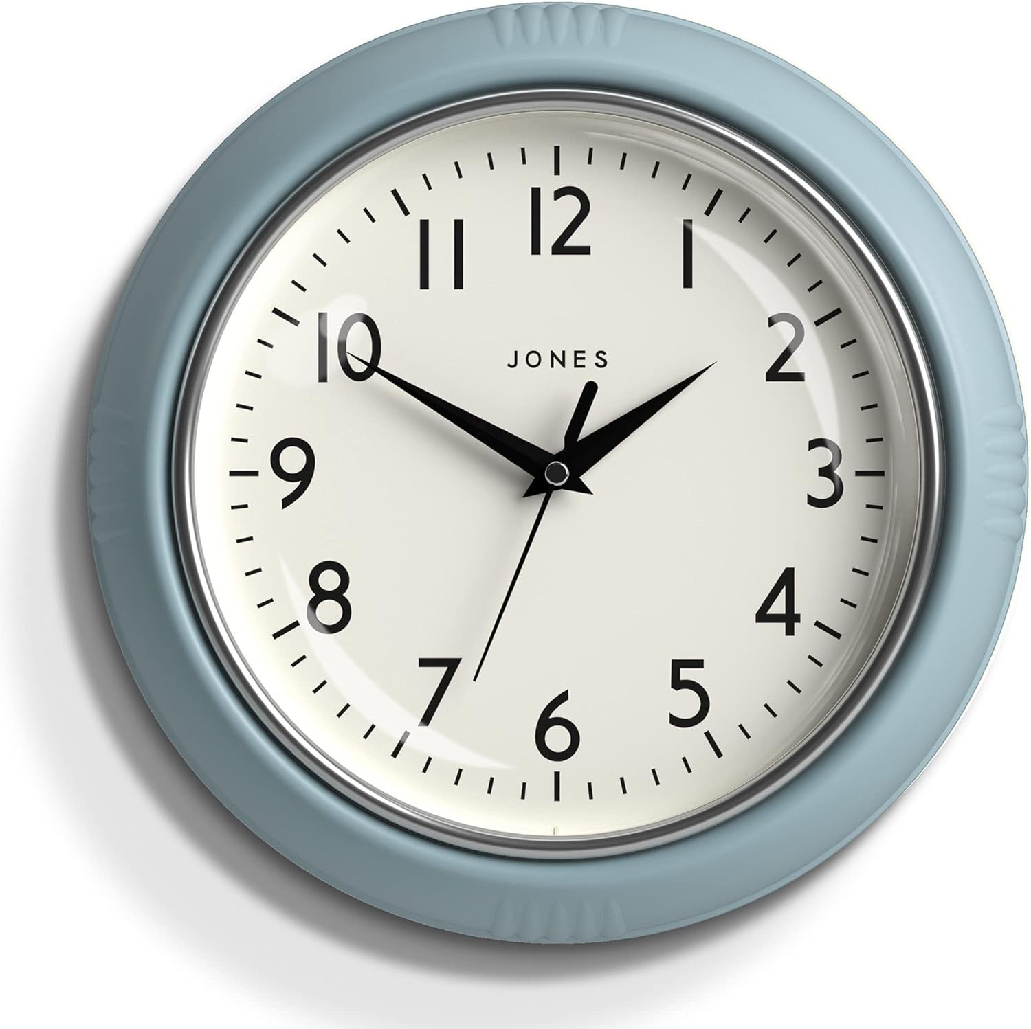Jones Clocks® Ketchup wall clock | Retro round clock | 25cm | Pale blue | Easy