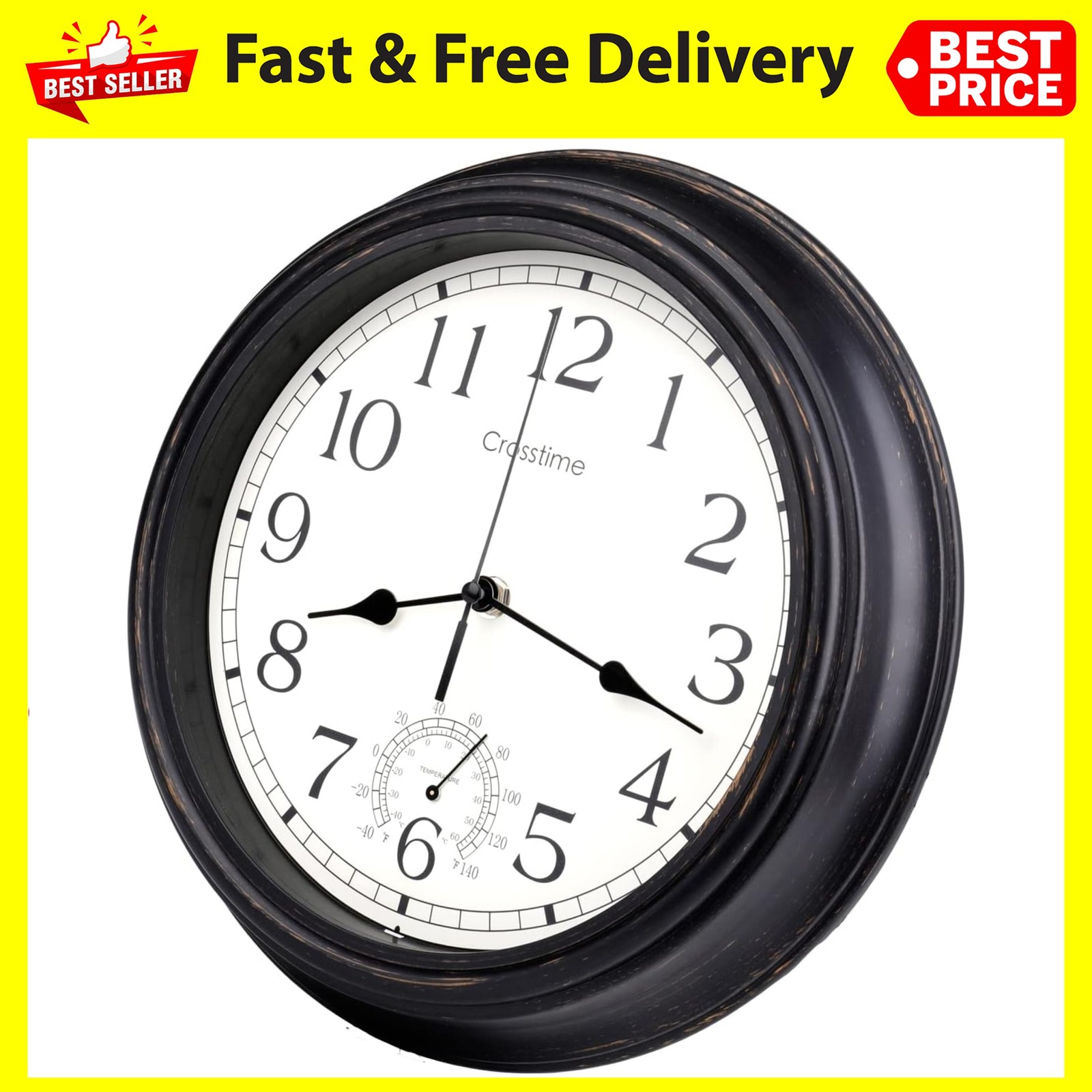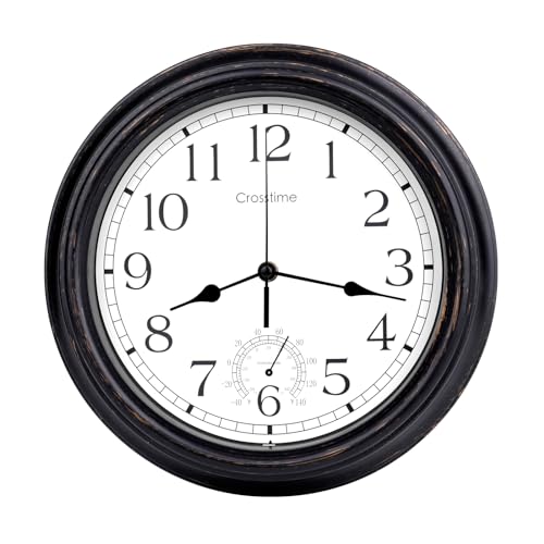 Crosstime 40cm Large Outdoor Clock Waterproof with Thermometer Retro Vintage Wall Clocks for Garden Patio Pool Living Room Decor- 16 Inch