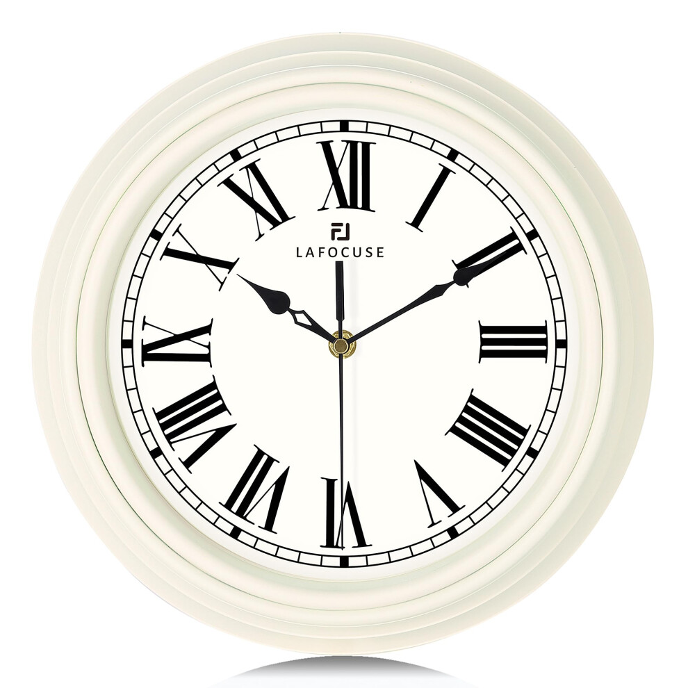 Lafocuse 12 Inch Silent Cream Kitchen Wall Clock Roman Numerals, Quartz Decorative Retro Wall Clocks for Living Room Modern Bedroom 30cm-Version 2.0