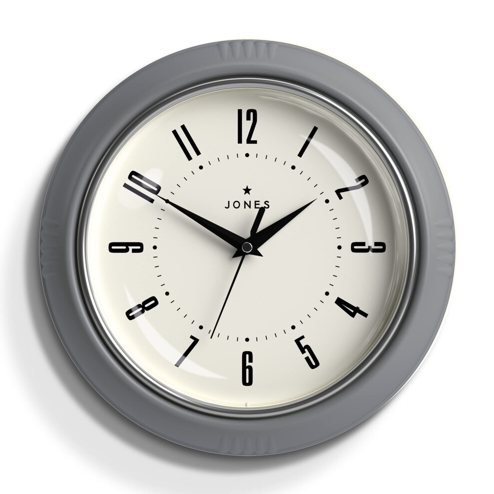 Jones Clocks® Ketchup wall clock | Retro round clock | 25cm | Grey | Easy to read numbers | Perfect for kitchen or office