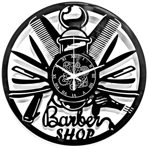 Instant Karma Clocks | Barber Shop Wall Clock | Retro Hairdresser Tools Design with Pole and Blades | Silent Quartz Movement | Perfect for Barbers, Salons and Vintage Decor