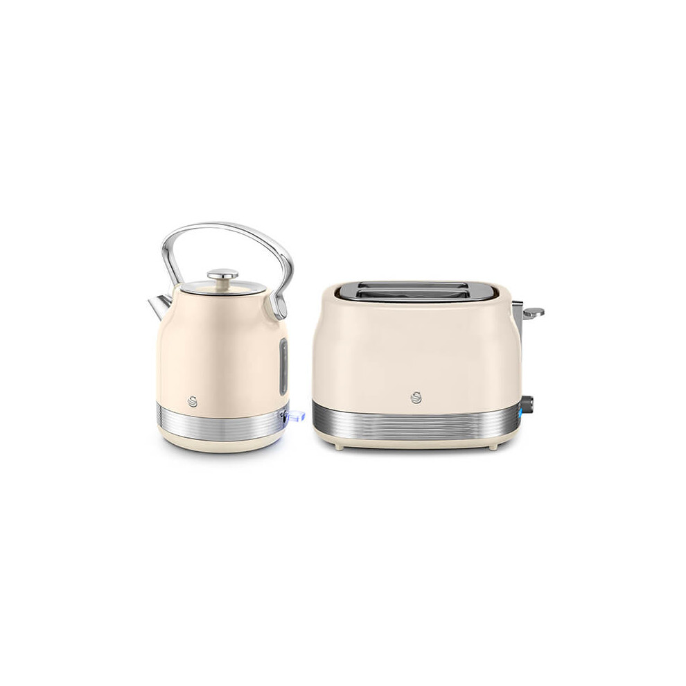 Swan Retro Kitchen Set, 1.7L Rapid Boil Traditional Kettle and 2 Slice Toaster, Non-Slip Feet, Cream, SK14631C & ST19028C, EEJB352