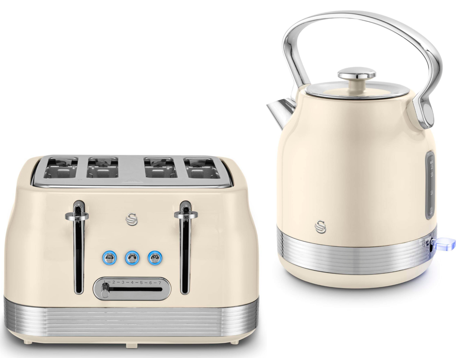 Swan Retro Kitchen Set, 1.5L Fast Boil Kettle & 4 Slice Toaster, Cream EEJB183