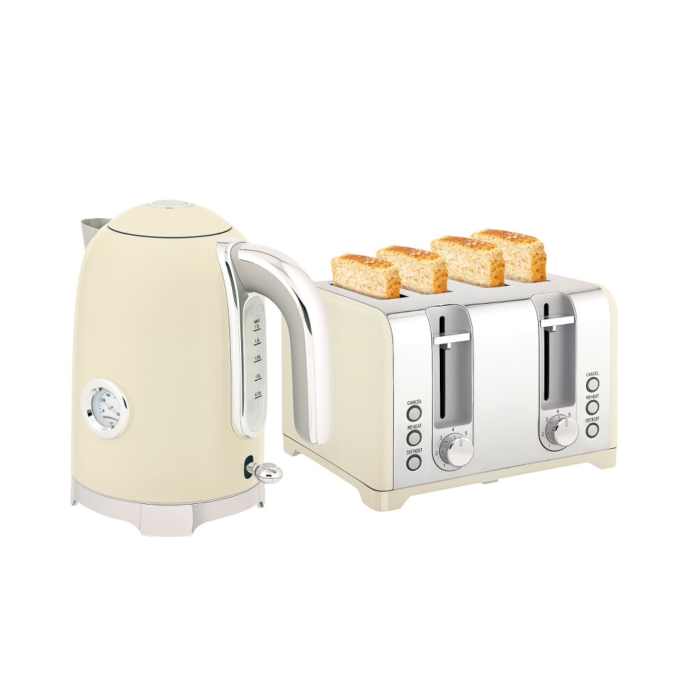 Salter Cream Retro Kettle 4Slice Toaster Set 1.7L Fast Boil Wide Slot