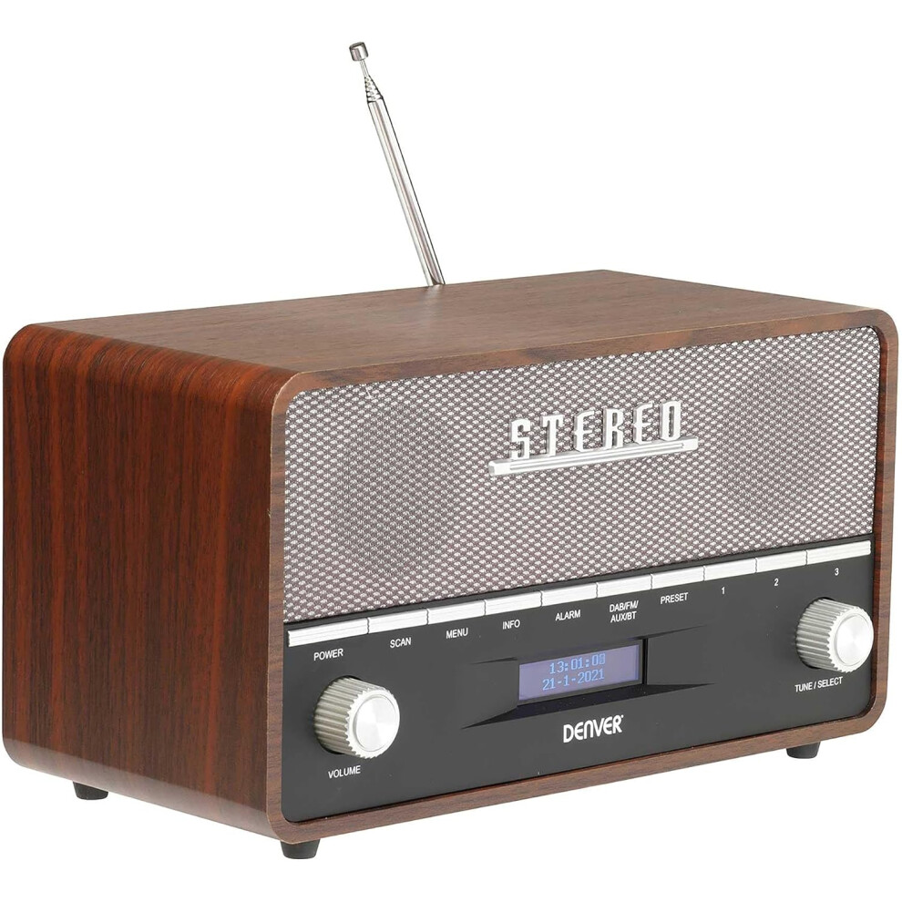 (Dark Wood) Denver DAB-36 Retro Bluetooth DAB+ FM Radio