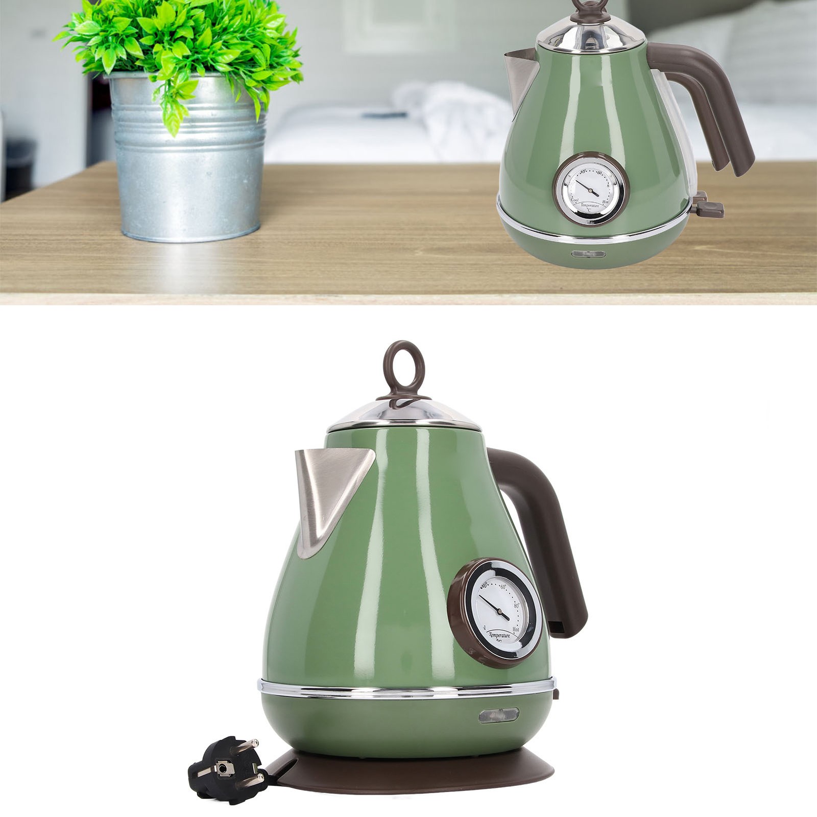 (Green) 1.7L / 1800W Retro Electric Kettle with Thermometer Display Stainless Steel Water Kettle