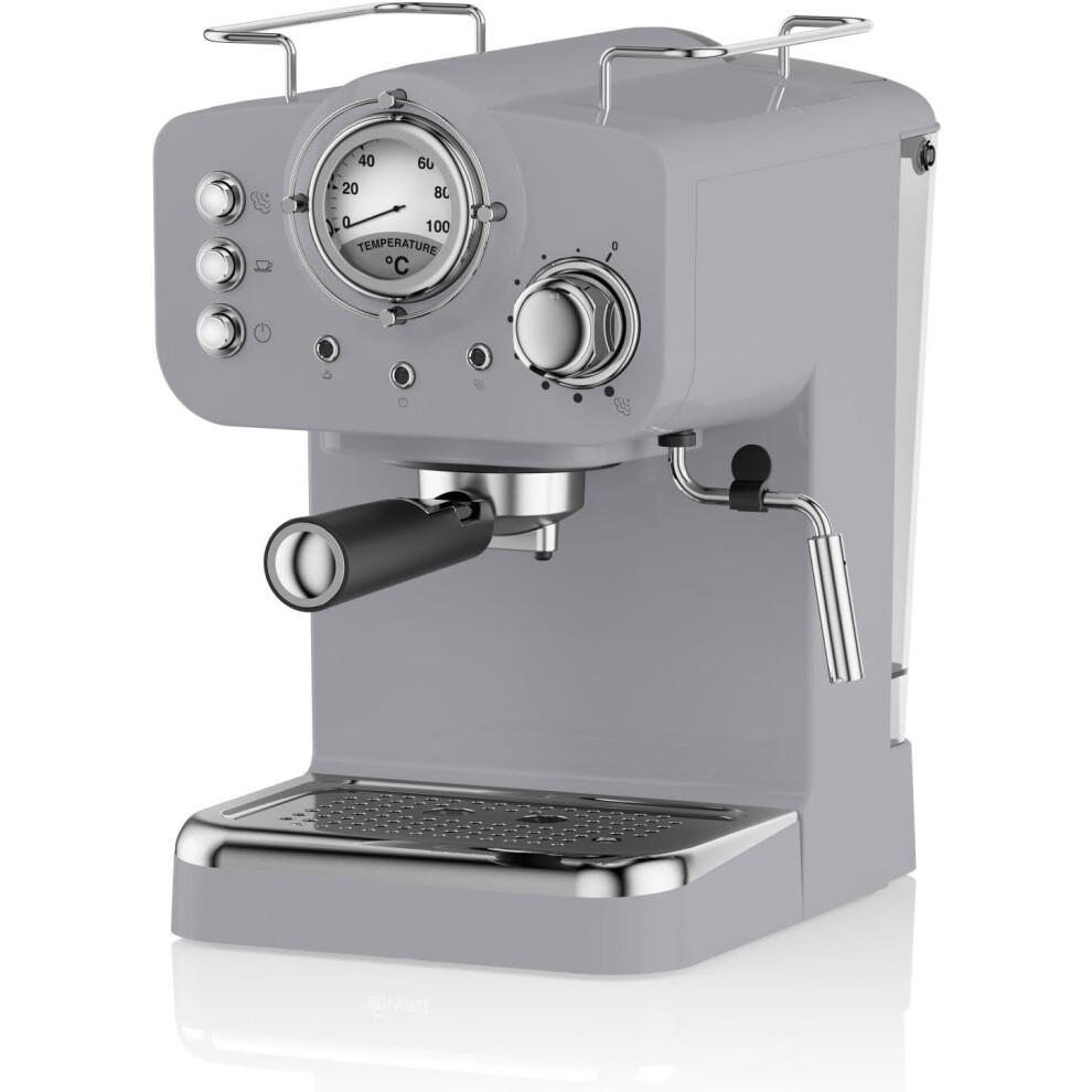Swan SK22110GRN Retro Espresso Plastic Coffee Machine with Milk Frother, Steam Pressure Control, 1.2L Detachable Water Tank, 1100W, Retro Grey