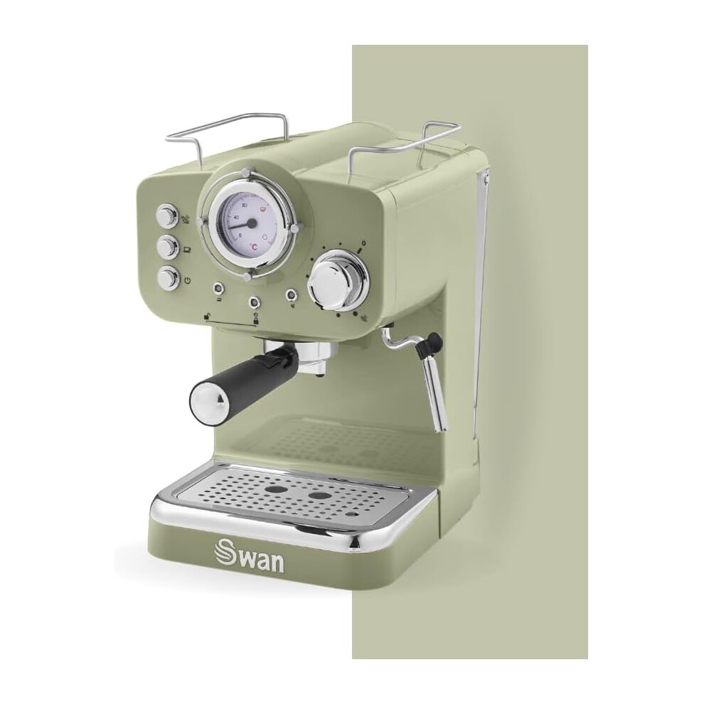 Swan SK22110GN Retro Espresso Coffee Machine with Milk Frother, Steam Pressure Control, 1.2L Detachable Water Tank, 1100W, Retro Green