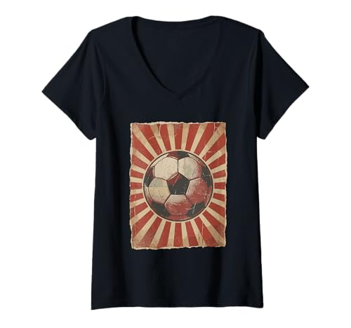 Women's Vintage Soccer Ball Retro Football Fan Grunge Sport Design V-Neck T-Shirt