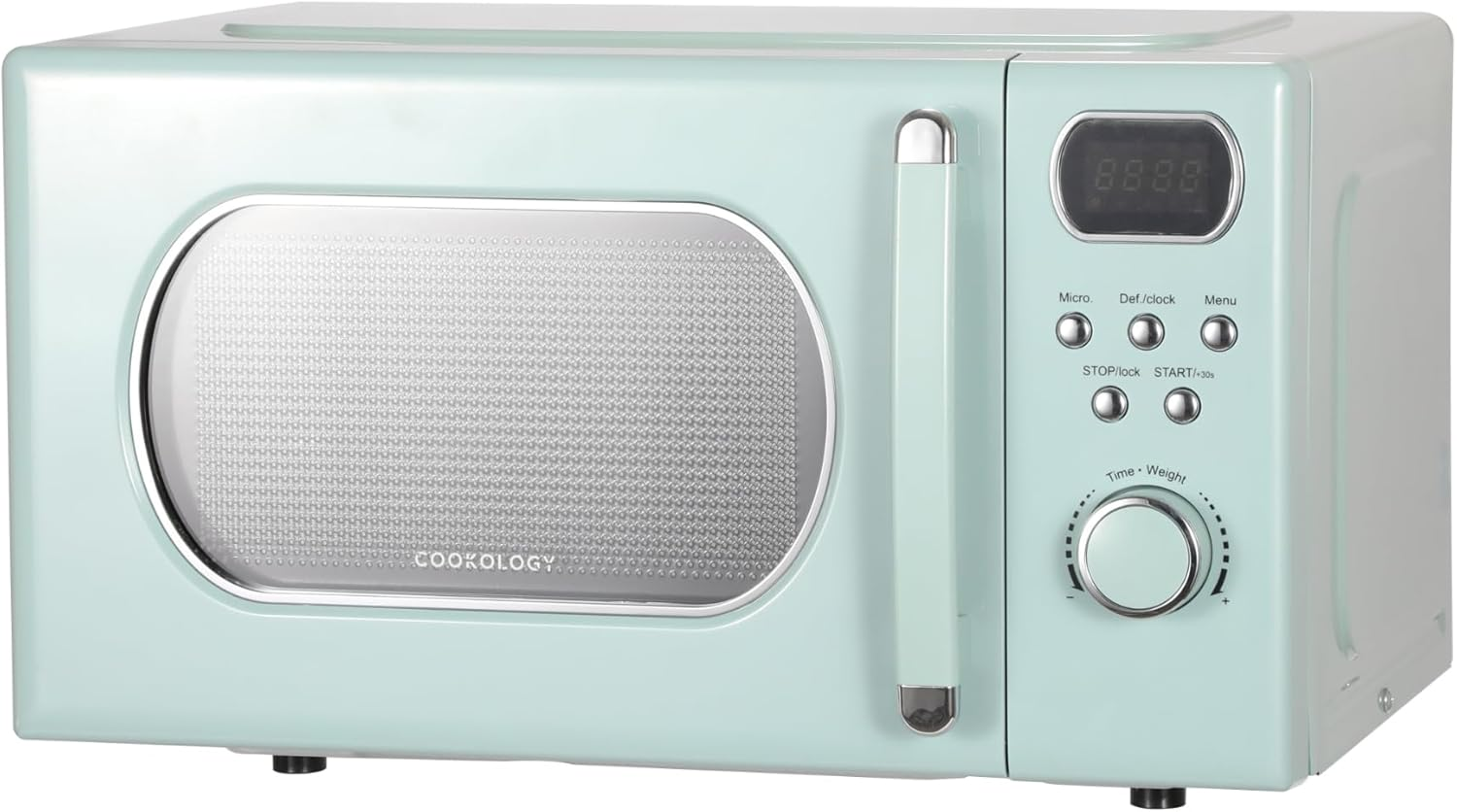 Cookology RETDD20MG 20L Retro Microwave, 800W, 25.5cm Turntable, 8 Auto Programmes, 5 Power Levels, Defrost - Mint Green