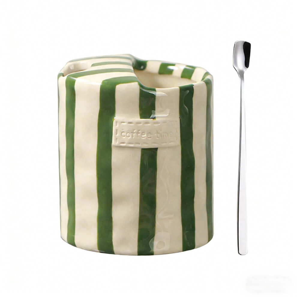 Ceramic Travel Mug Striped Coffee Mug 10oz Retro Hand-Painted Microwave & Dishwasher Safe, Perfect Present for Coffee Lovers (Green)