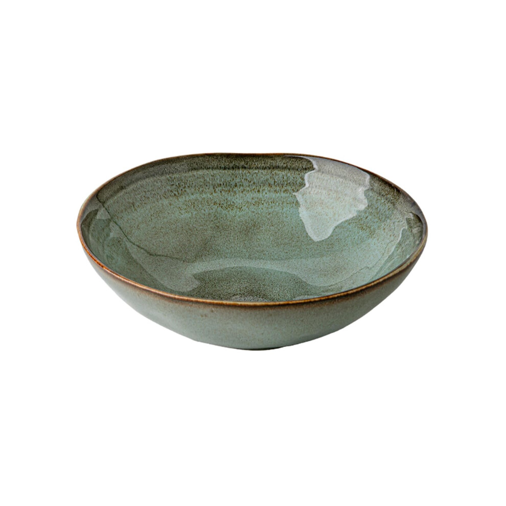 8 Inch Ceramic Noodle Bowl Green Retro Dinnerware Microwave and Dishwasher Safe