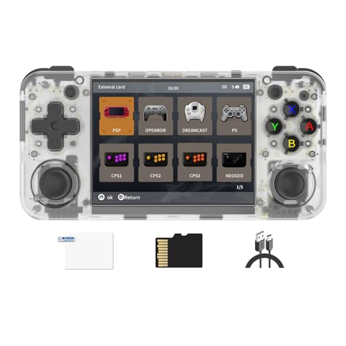 RG35XX H Retro Video Handheld Game Console 3.5 in IPS Screen Linux OS 64G TF Card with 5500 Classic Games Built-in 3300mAH Battery Compatible with 5G WiFi and Bluetooth 4.2(White Translucent)