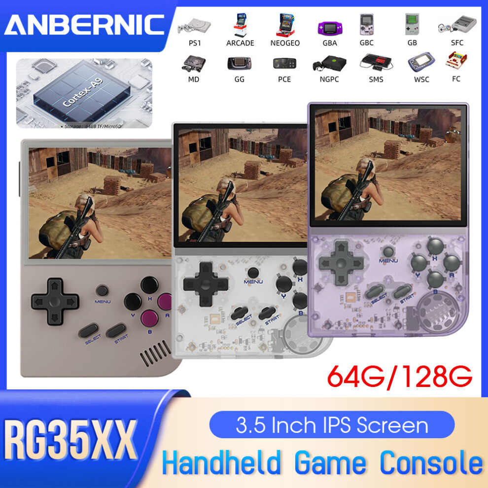 SXMA Anber nic RG35XX Retro Handheld Game Console Dual System Linux Garlic OS- 64Gb TF Card 6831 Built In Arcade Games Handheld Emulator 3.5 IPS OCA Screen 2600 Mah Battery