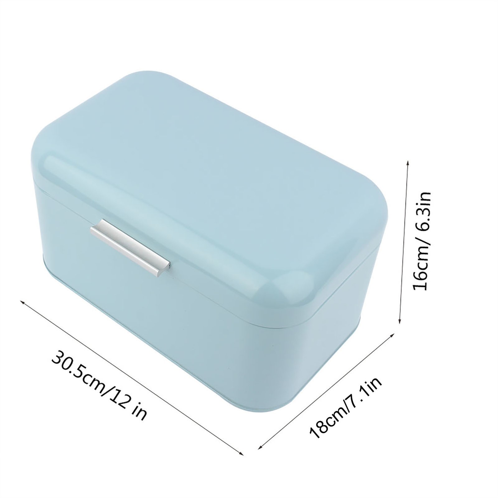 (Blue)Solid Color Retro Metal Bread Bin Box Large Capacity Kitchen Storage TU