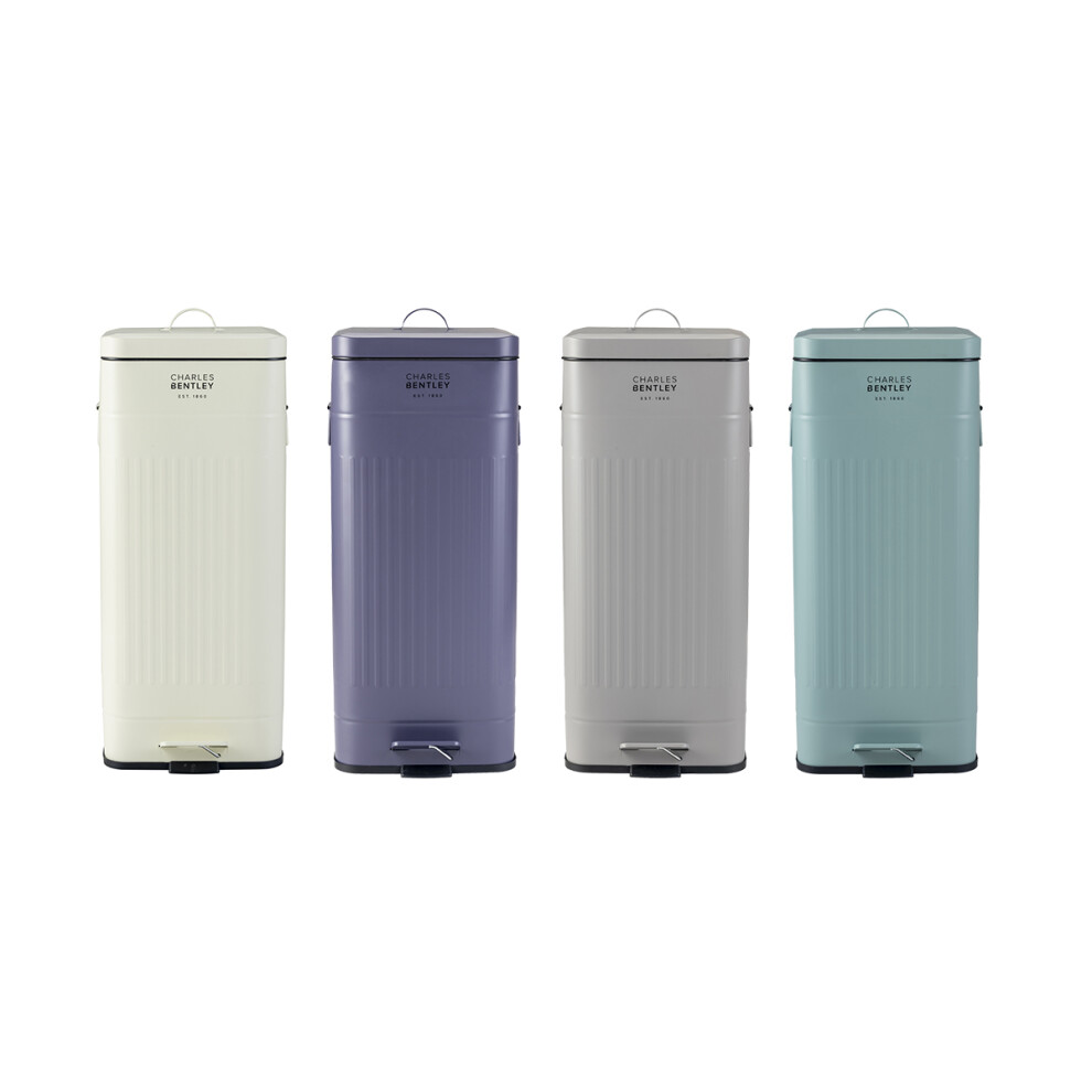 (Light Grey) Charles Bentley Powder Coated Steel Square Retro Kitchen Pedal Waste Bin - Fully Assembled in Various Colours - 30L