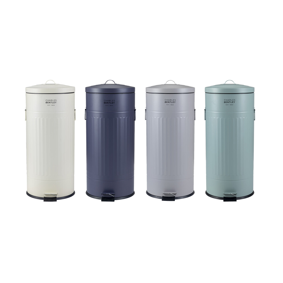 (Light Grey) Charles Bentley Retro Powder Coated Steel Waste Rubbish Kitchen Pedal Bin - Fully Assembled - 30L