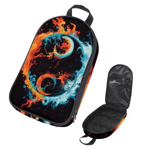 Fire Water Chinese Yin Yang Retro Pattern Kitchenware Storage Bag for Picnic, Waterproof Portable Cookware Organizer