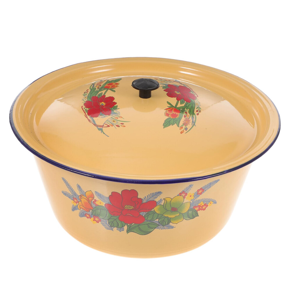 Retro Email Sink with Lid Vintage Kitchenware for Home Restaurant and Hotel Made of Enamel Material Versatile for Storage