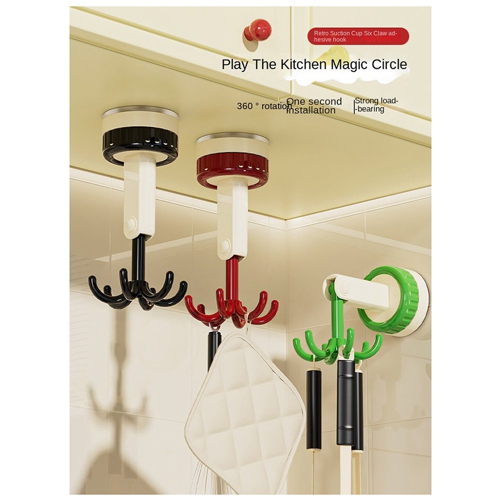 For Sixclaw Hook Multifunction Spatula Spoon Kitchenware Storage Rack Retro Suction Cup Seamless