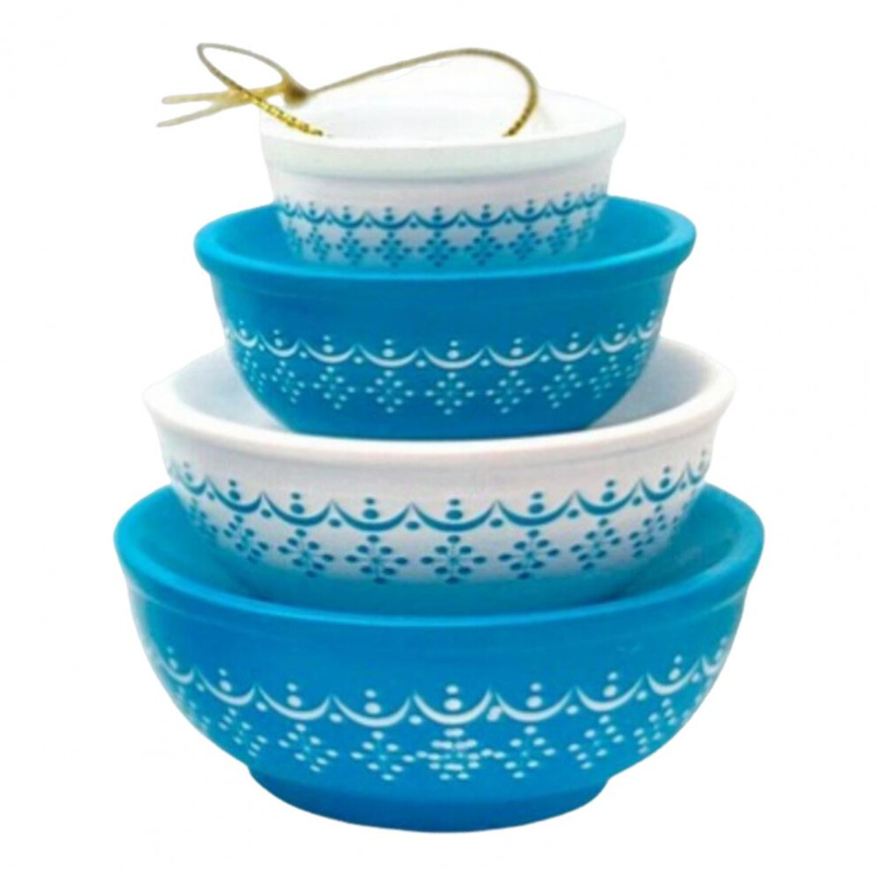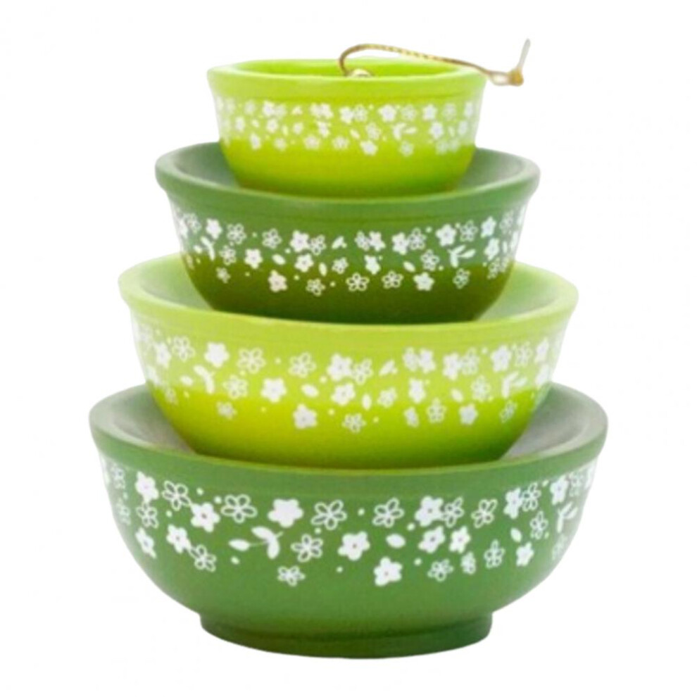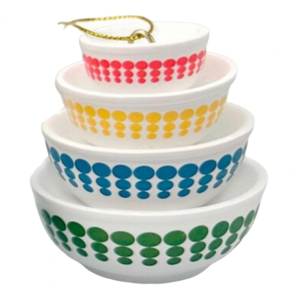 (Spring Blossom 1979) Christmas Stacking Bowls Ornament Retro Nesting Bowls Tree Hanging Decoration Miniature Resin Pendant for Kitchenware Decor
