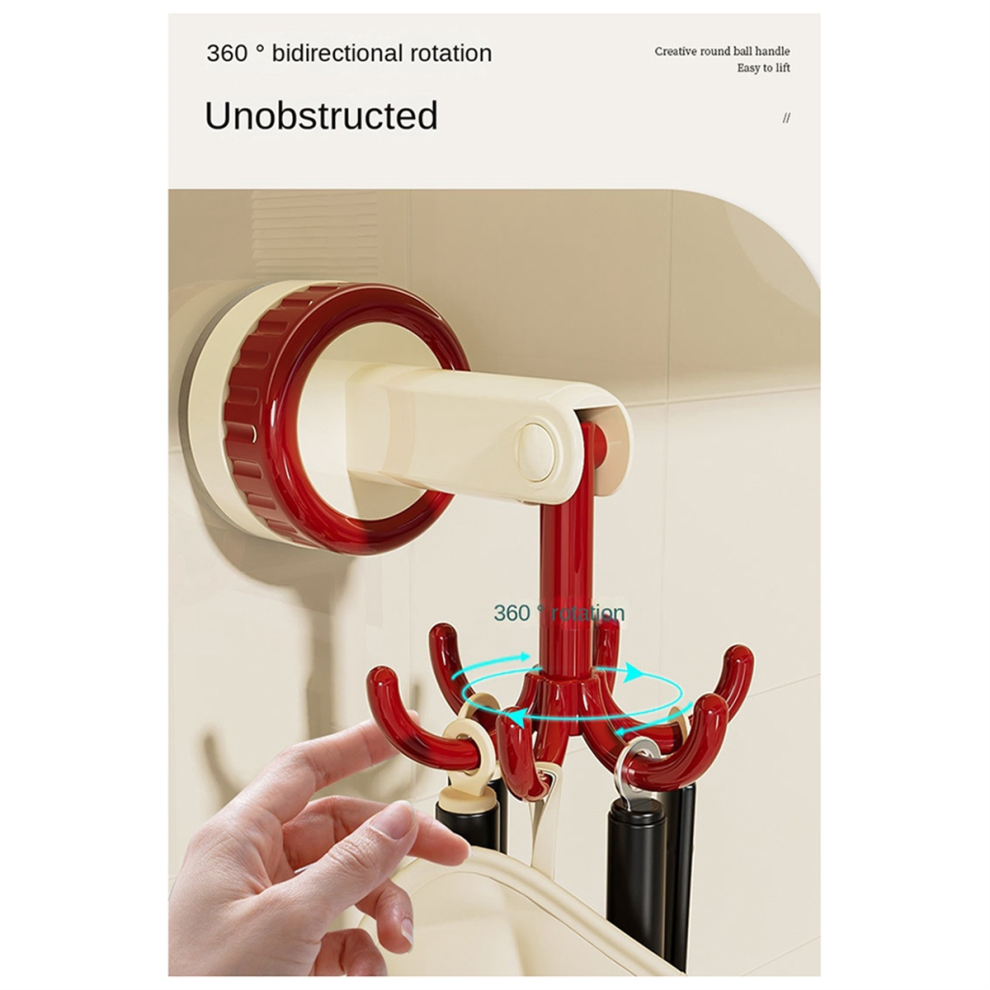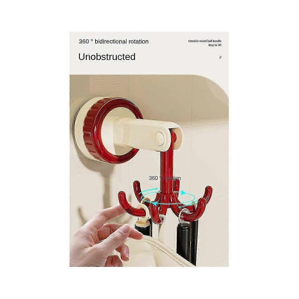 Six-Claw Hook Multi-Function Spatula Spoon Kitchenware Storage Rack Retro Suction Cup Seamless Wall Hanging Red