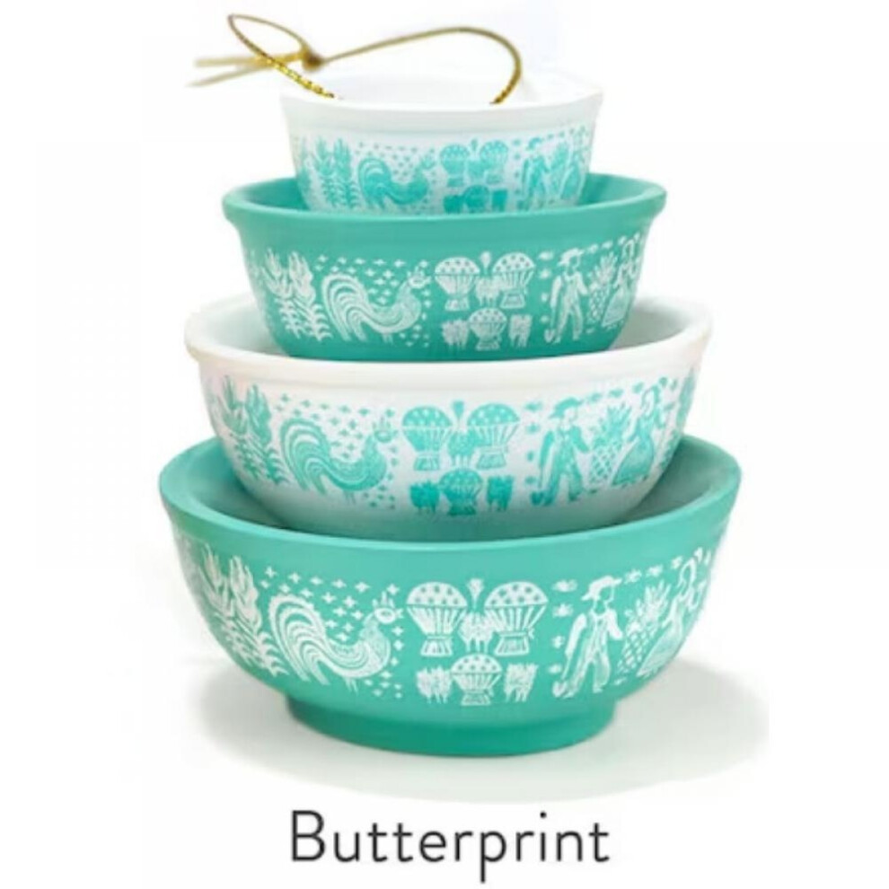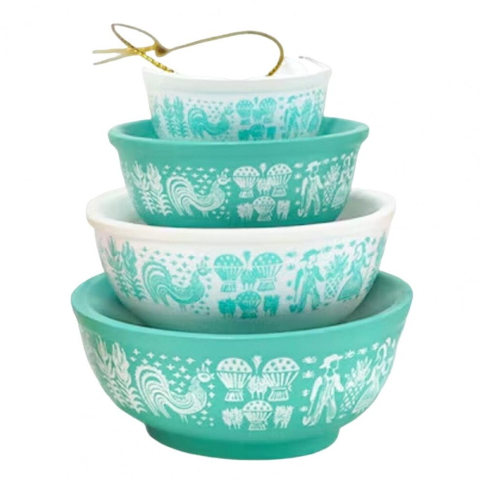 (Butterprint) Christmas Stacking Bowls Ornament Retro Nesting Bowls Tree Hanging Decoration Miniature Resin Pendant for Kitchenware Decor