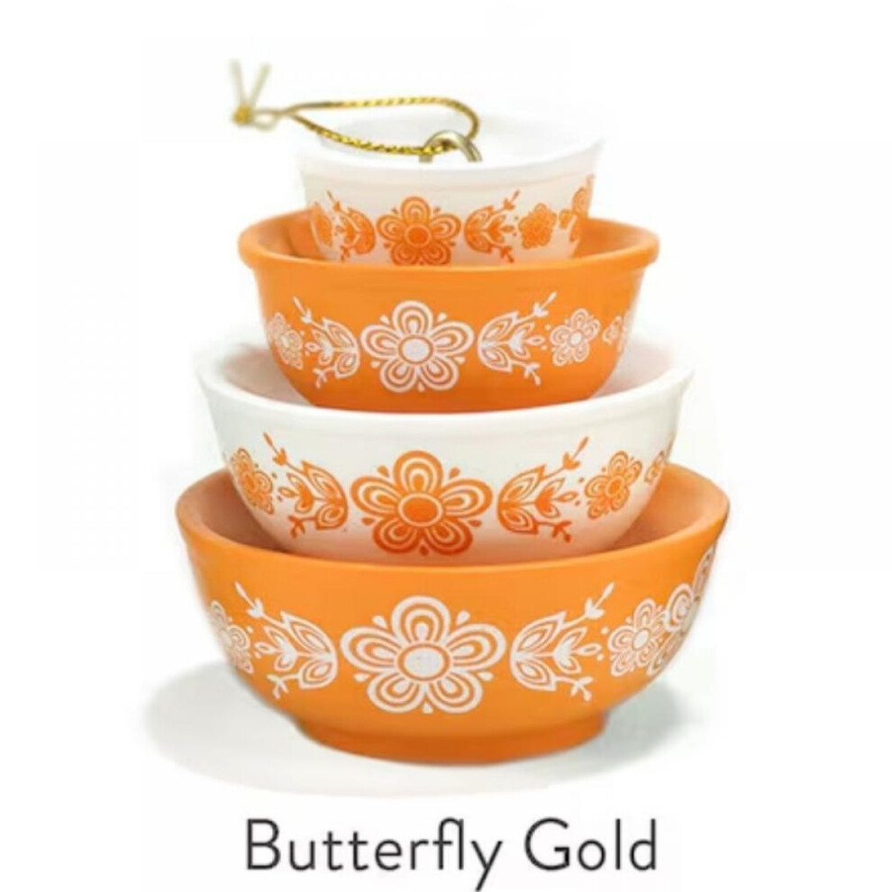 (Butterfly) Christmas Stacking Bowls Ornament Retro Nesting Bowls Tree Hanging Decoration Miniature Resin Pendant for Kitchenware Decor