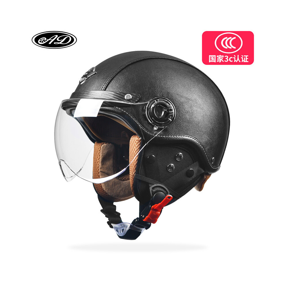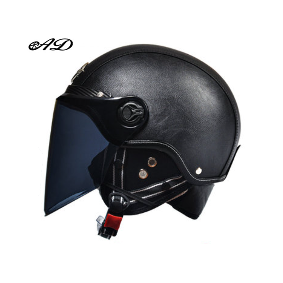 (black 2) AD Retro Motorcycle Helmets with Harley Visor Leather Helmet for Man Electric Motorbike Vintage Protected Motor Safety