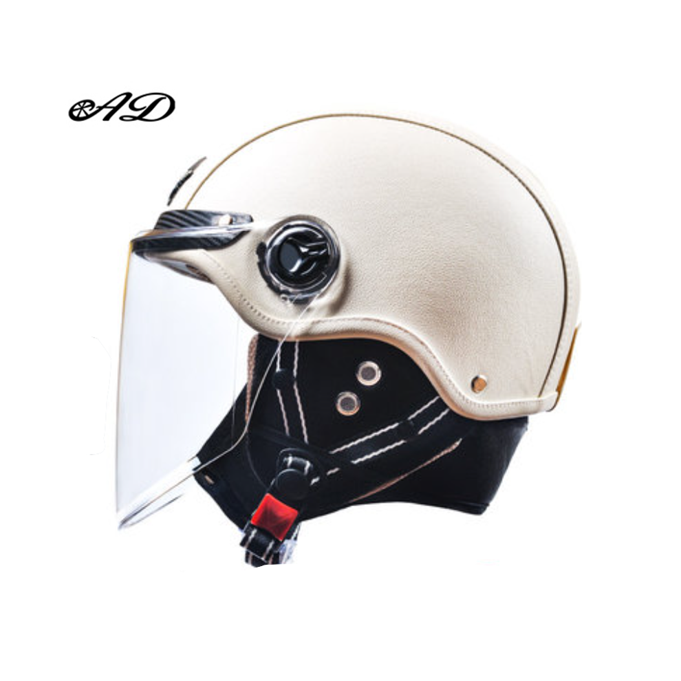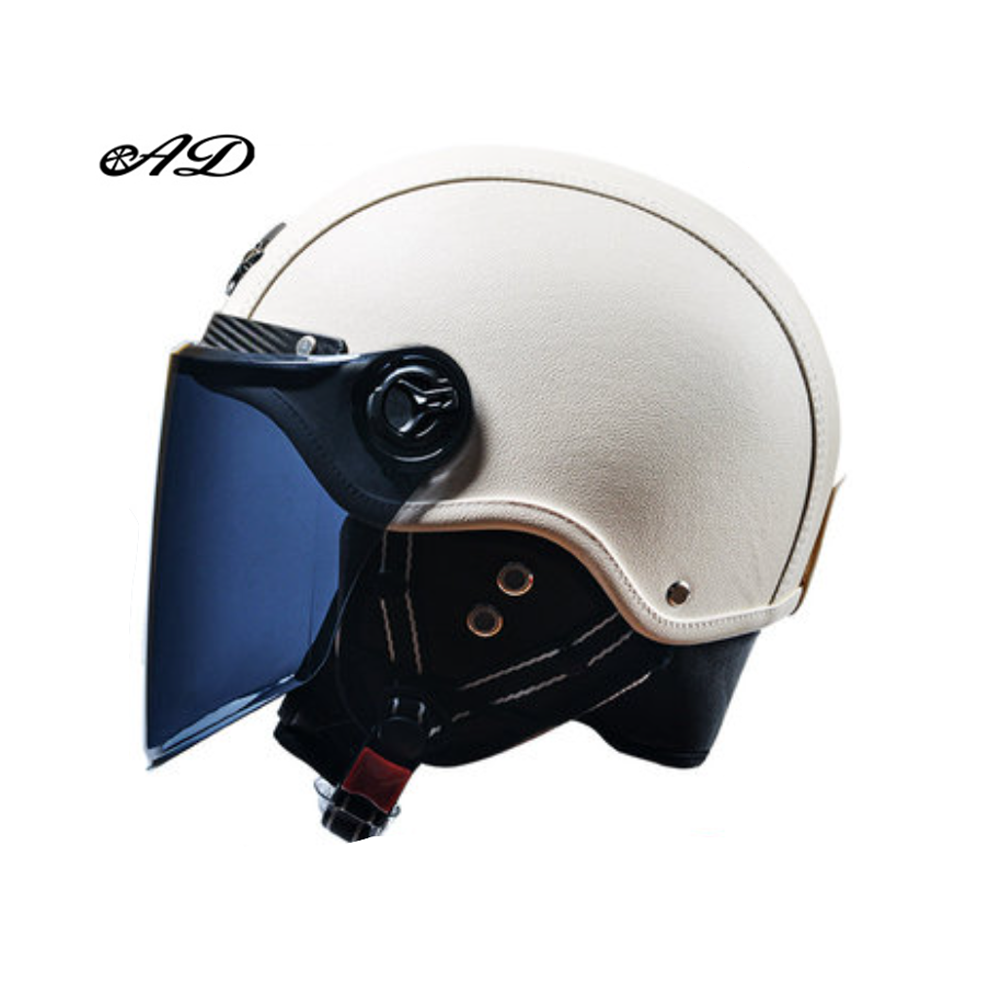 (white 4) AD Retro Motorcycle Helmets with Harley Visor Leather Helmet for Man Electric Motorbike Vintage Protected Motor Safety