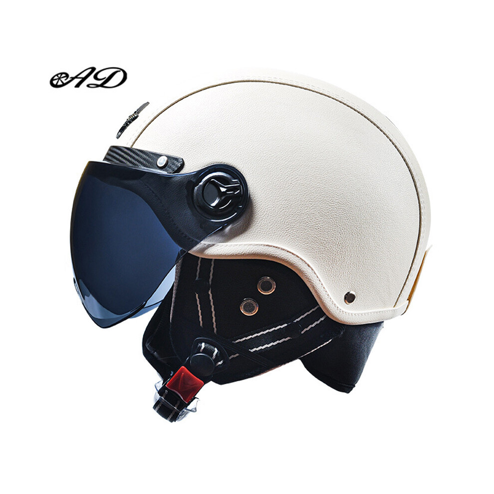 (white 2) AD Retro Motorcycle Helmets with Harley Visor Leather Helmet for Man Electric Motorbike Vintage Protected Motor Safety