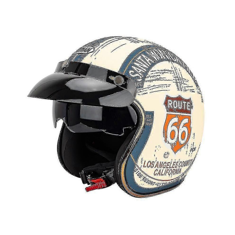 (L, One size) Open-face 3/4 Adult Retro Motorcycle Helmets With Goggles And Sun Visor