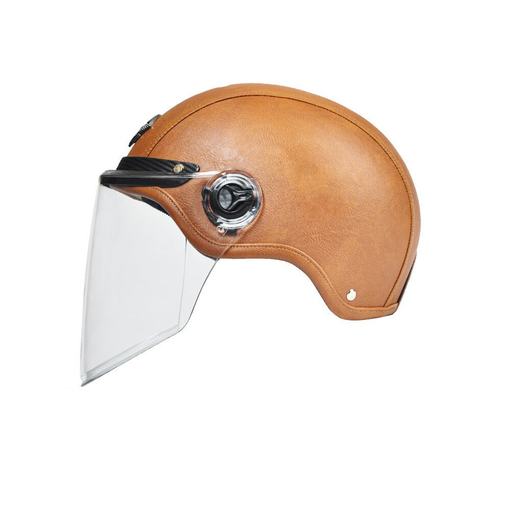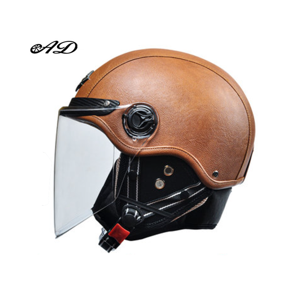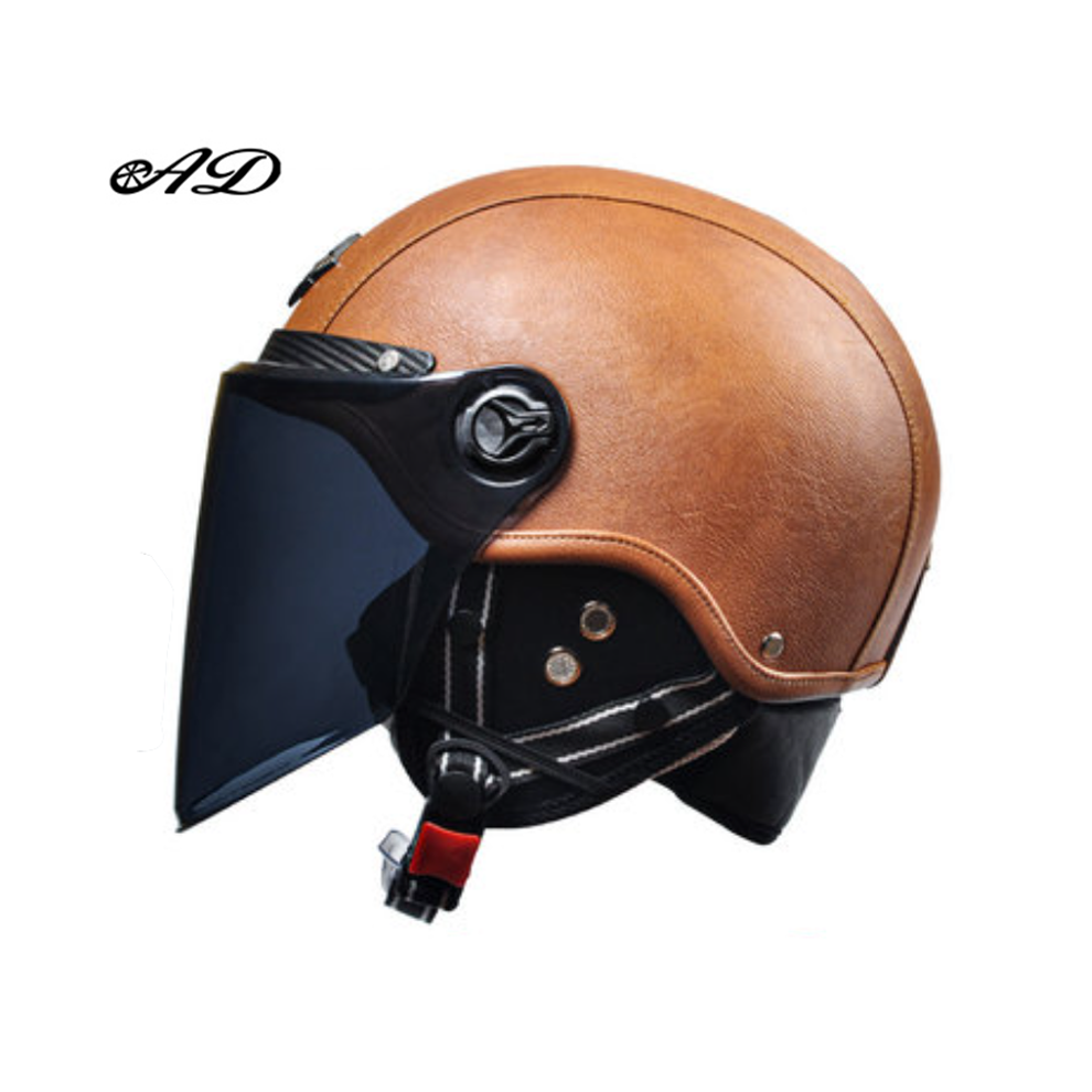 (summer brown 2) AD Retro Motorcycle Helmets with Harley Visor Leather Helmet for Man Electric Motorbike Vintage Protected Motor Safety