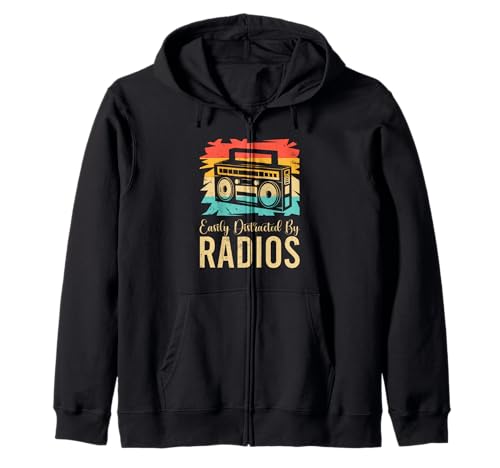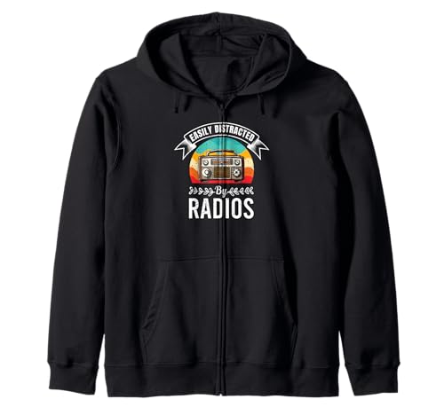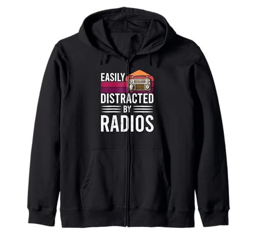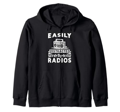 Easily Distracted By Radios Retro Boombox Zip Hoodie