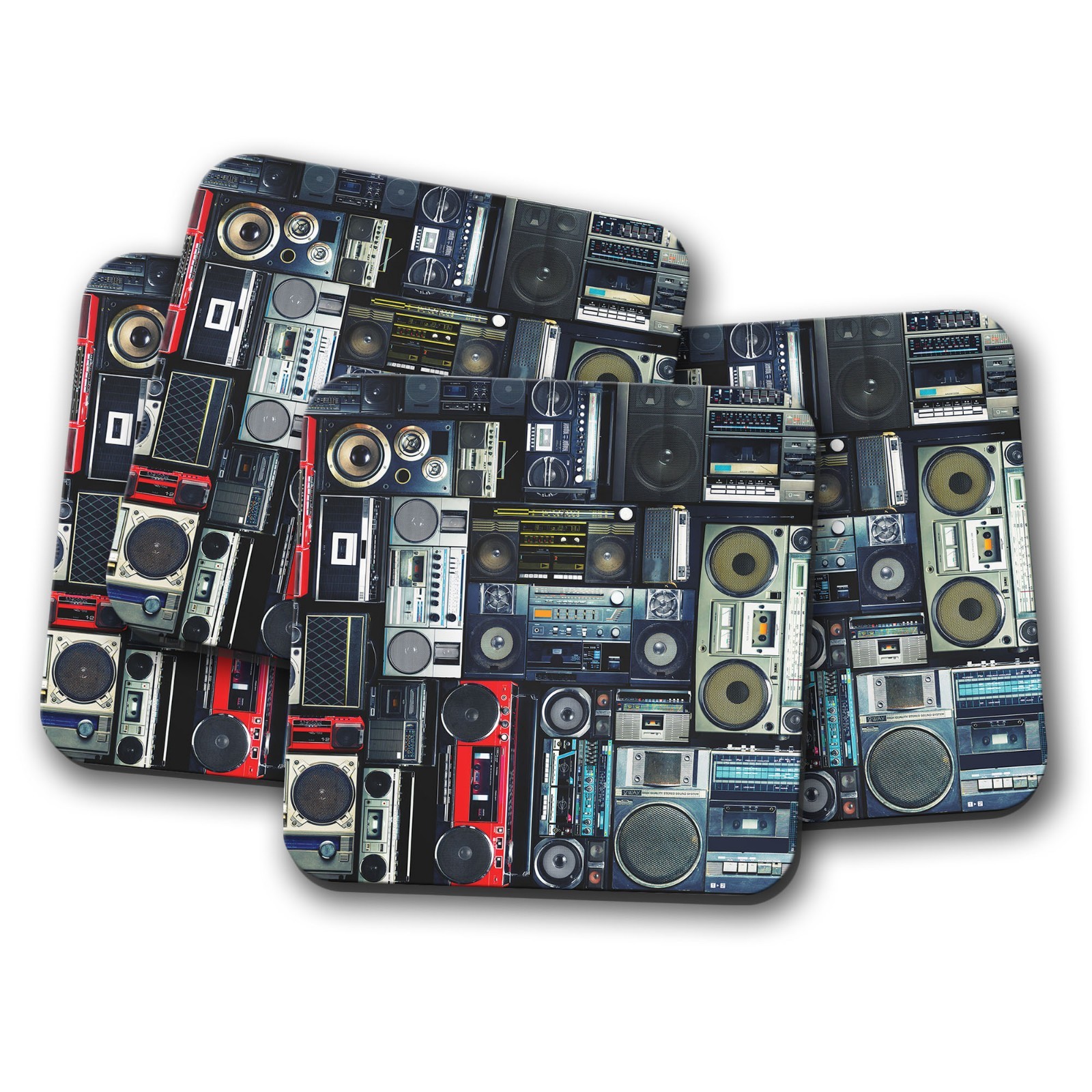 4 Set - Retro Radios Coaster - Cassette Tape Vintage Music Boombox Gift #14242