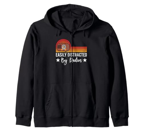Easily Distracted By Radios Retro Style With Stars Zip Hoodie