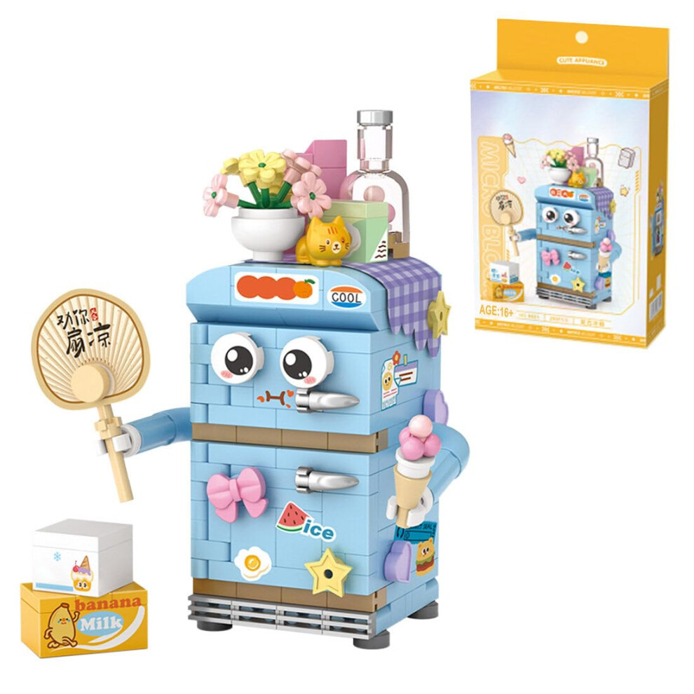 Mini Building Blocks Retro Refrigerator Model, 250+ Micro Brick Pieces DisplayReady Cartoon Appliance Toy Set