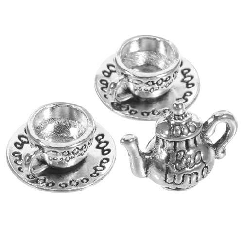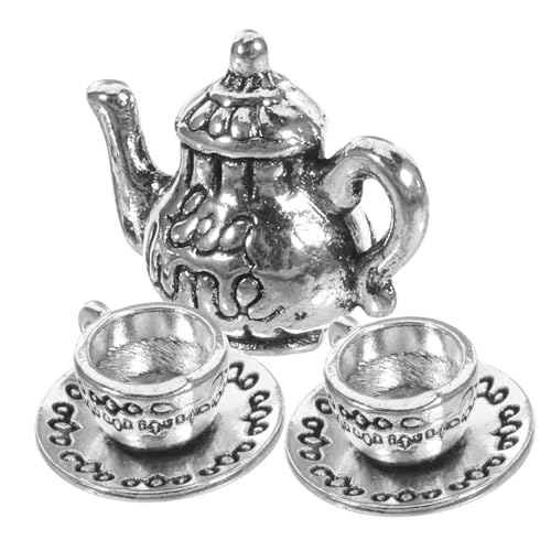 Healifty Mini Metal Teapot and Tea Cup Zinc Alloy Retro Ornament for Dollhouse Kitchen Photography Props Vintage Style Decorative Miniature Tea Kettle Model