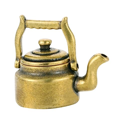 HOODANCOS Miniature Brass Teapot Decor Retro Vintage Style Compact Tiny Tea Kettle Ornament for Desktop Display and Dollhouse Centrepiece Handcrafted Brass